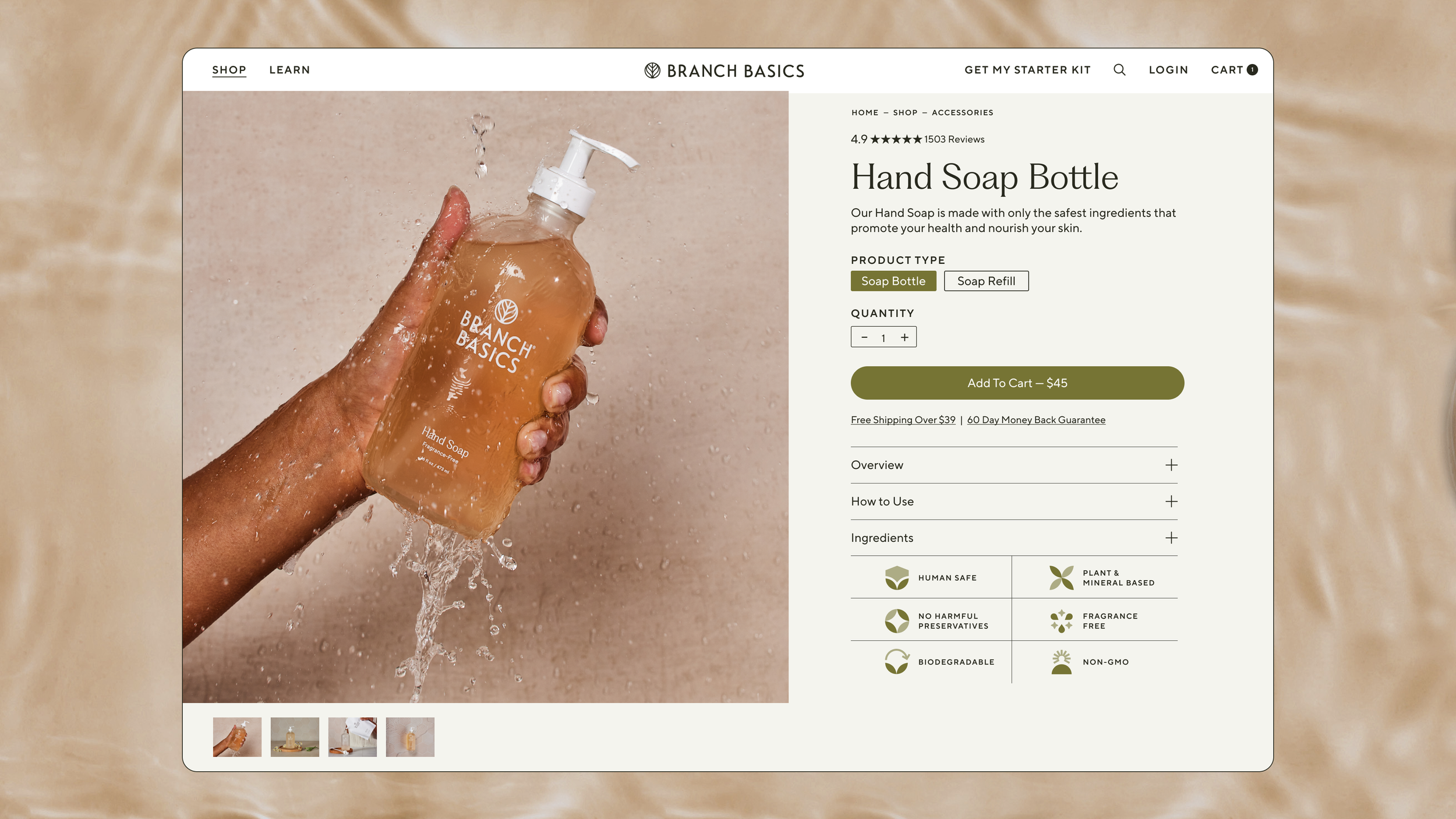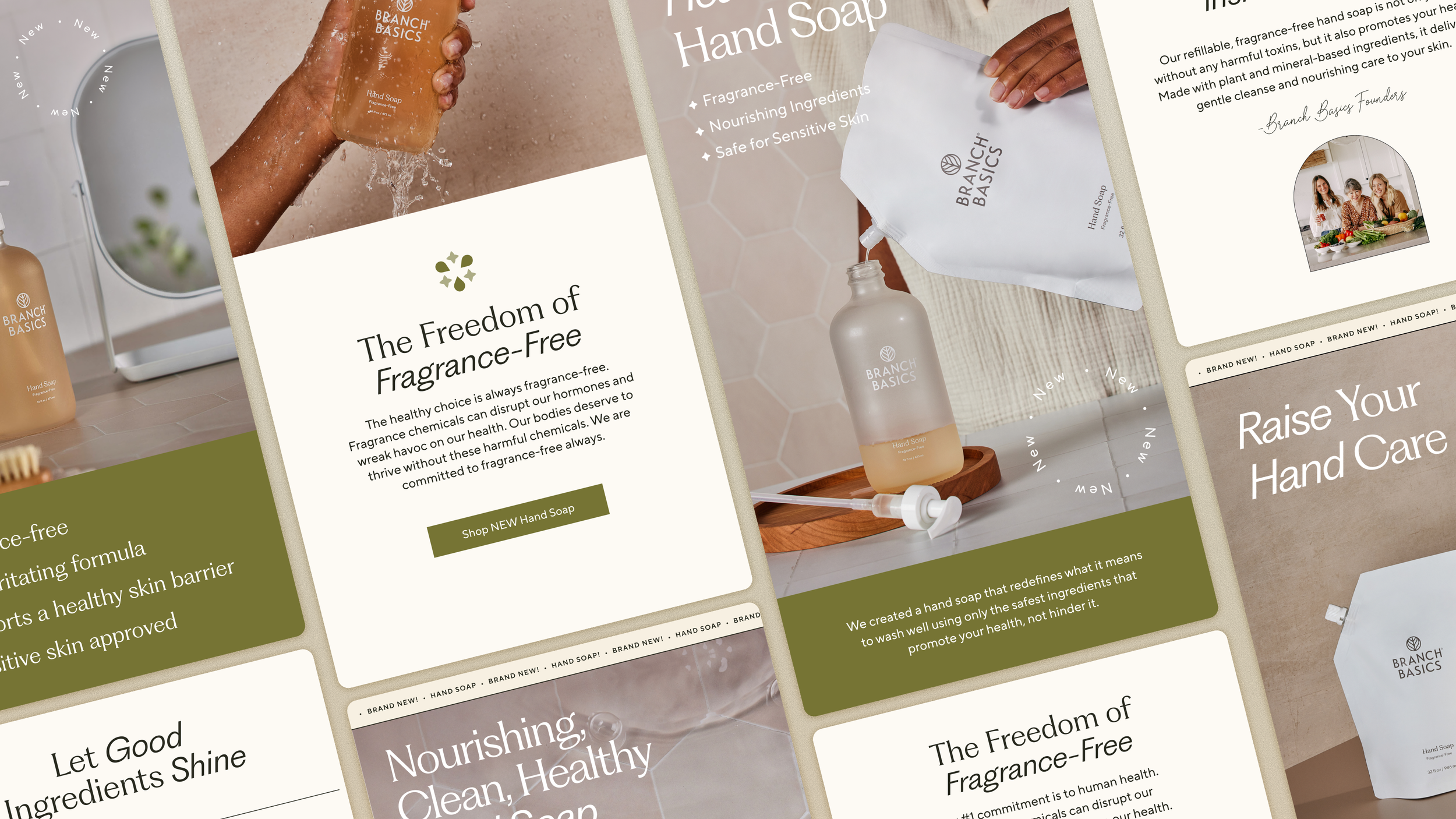 The Gel Hand Soap launch became the first new product line after I joined Branch Basics. I owned the campaign from concept through execution, leading photography direction and translating the visual story across PDPs, email, social, and paid media.