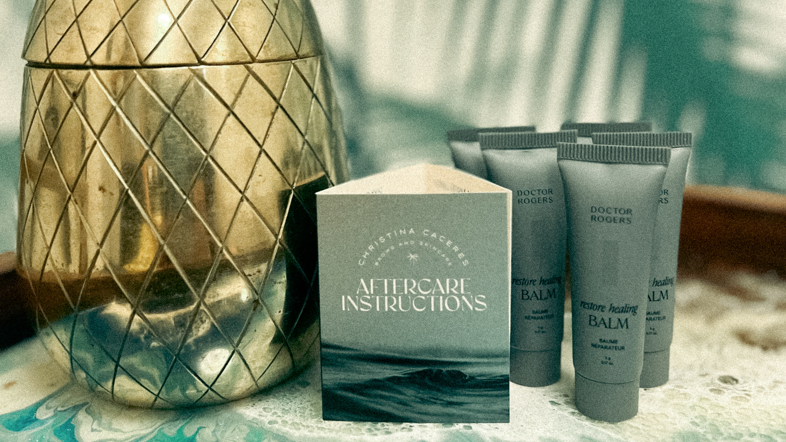 To reflect that experience, I shaped a visual identity that feels elevated, vibrant, and softly rooted in her Hawaiian heritage. Once the brand foundation was defined, I extended it into marketing collateral — from business cards to aftercare kits — ensuring every touchpoint felt cohesive, welcoming, and easy for clients to navigate both in-studio and at home.